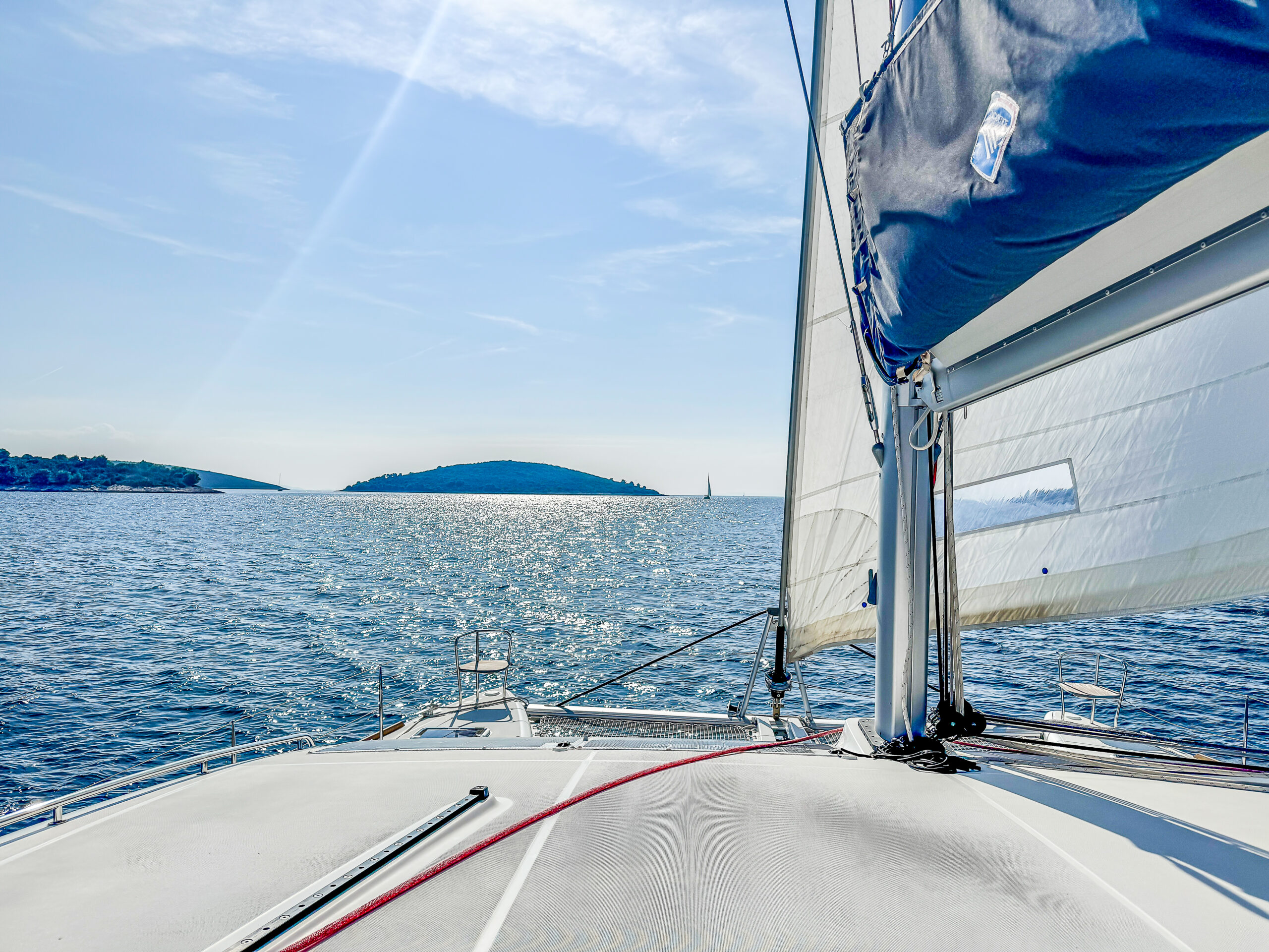 Dein Mobiles Executive-Refugium: Moderner Katamaran. Wir nutzen geräumige, moderne Katamarane für maximale Stabilität und Bewegungsfreiheit. Du verbringst 7 Nächte in einer Doppelkabine (auf Wunsch alleine) an Bord. Unsere Yacht ist nicht nur ein Transportmittel, sondern Dein geschütztes Umfeld für maximale Fokussierung, tiefgehende Selbstreflexion (Blue Mind Effect) und Deine persönliche Transformation.